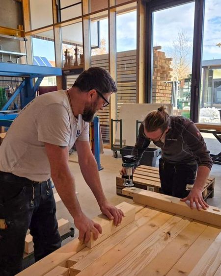 Beide sind seit Ihrer Zimmererausbildung bei uns im Betrieb und haben sich über die Jahre entwickelt und Verantwortung auf unseren Baustellen übernommen. Sie zeigen dabei viel Engagement und Motivation – echte Vorbilder.